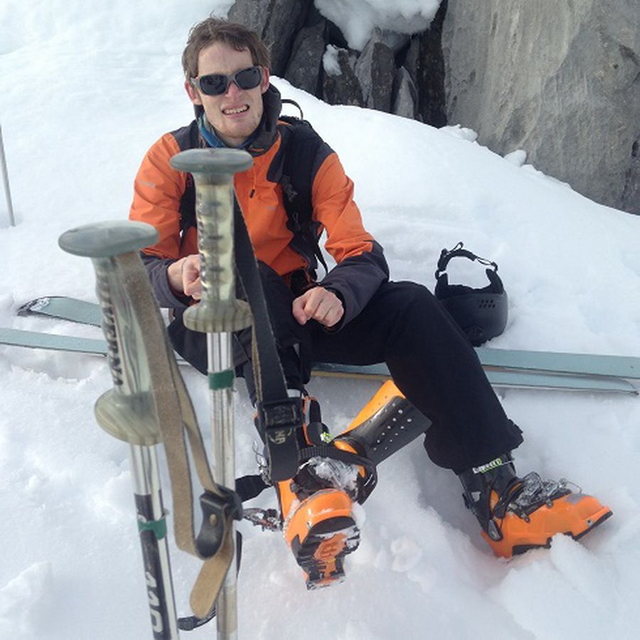 Après quelques conversions (juste pour le plaisir) et quelques glissades arrières 😋, nous sommes arrivés au col séparant le Roc des Tours et l'Aiguille verte. Là démarrait l'aventure et le pilotage... En effet, le manque de neige et les lapias béants présents sur cette zone rendaient la situation difficile. La décision de faire demi tour a été prise très rapidement !